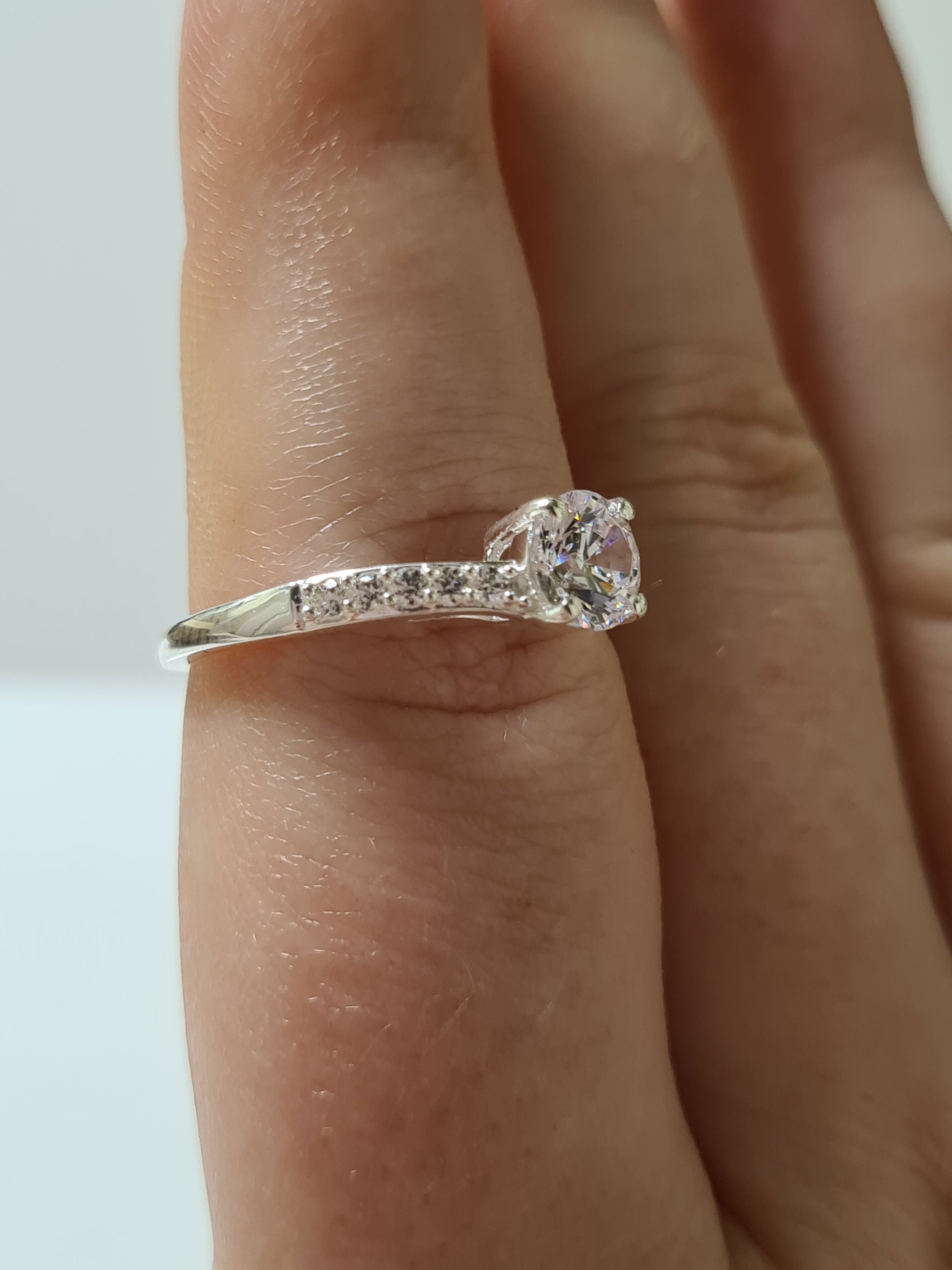 Immerse yourself in the timeless allure of our Swarovski Zirconia Bypass Ring in Sterling Silver, a captivating piece crafted in hallmarked 925 solid sterling silver. Resizable by 3 sizes up or down at your local jeweler, this ring features a total of 1.75ct Swarovski Zirconia, with a stunning 6mm faceted cut round stone as the centerpiece.