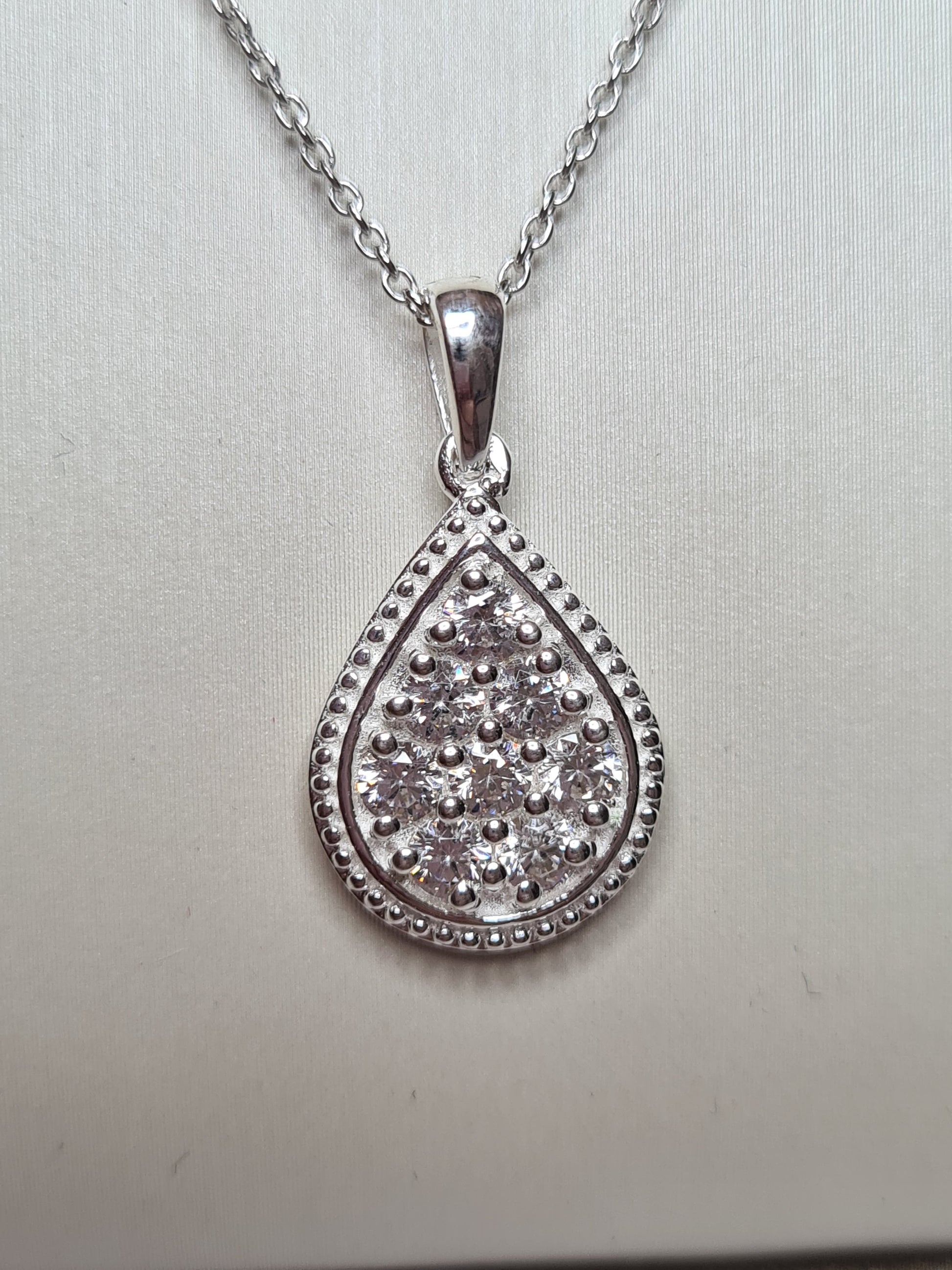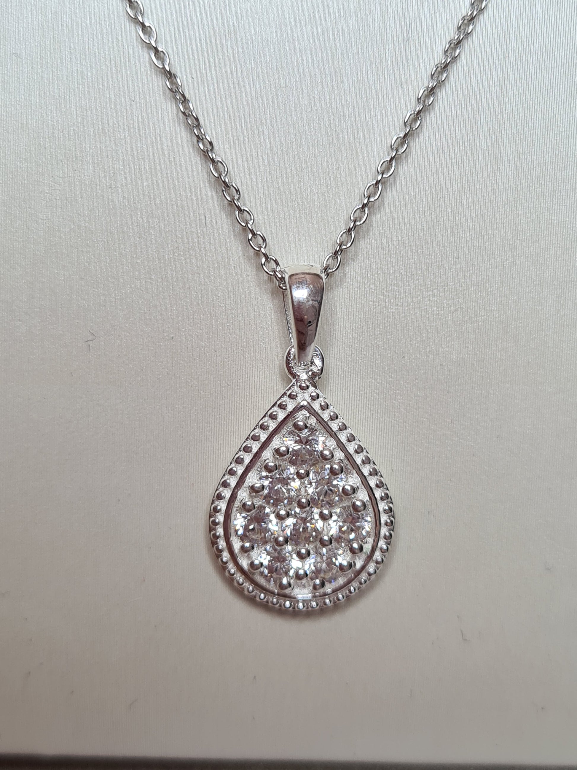 Swarovski Zirconia Cluster Pear Drop Necklace sterling silver