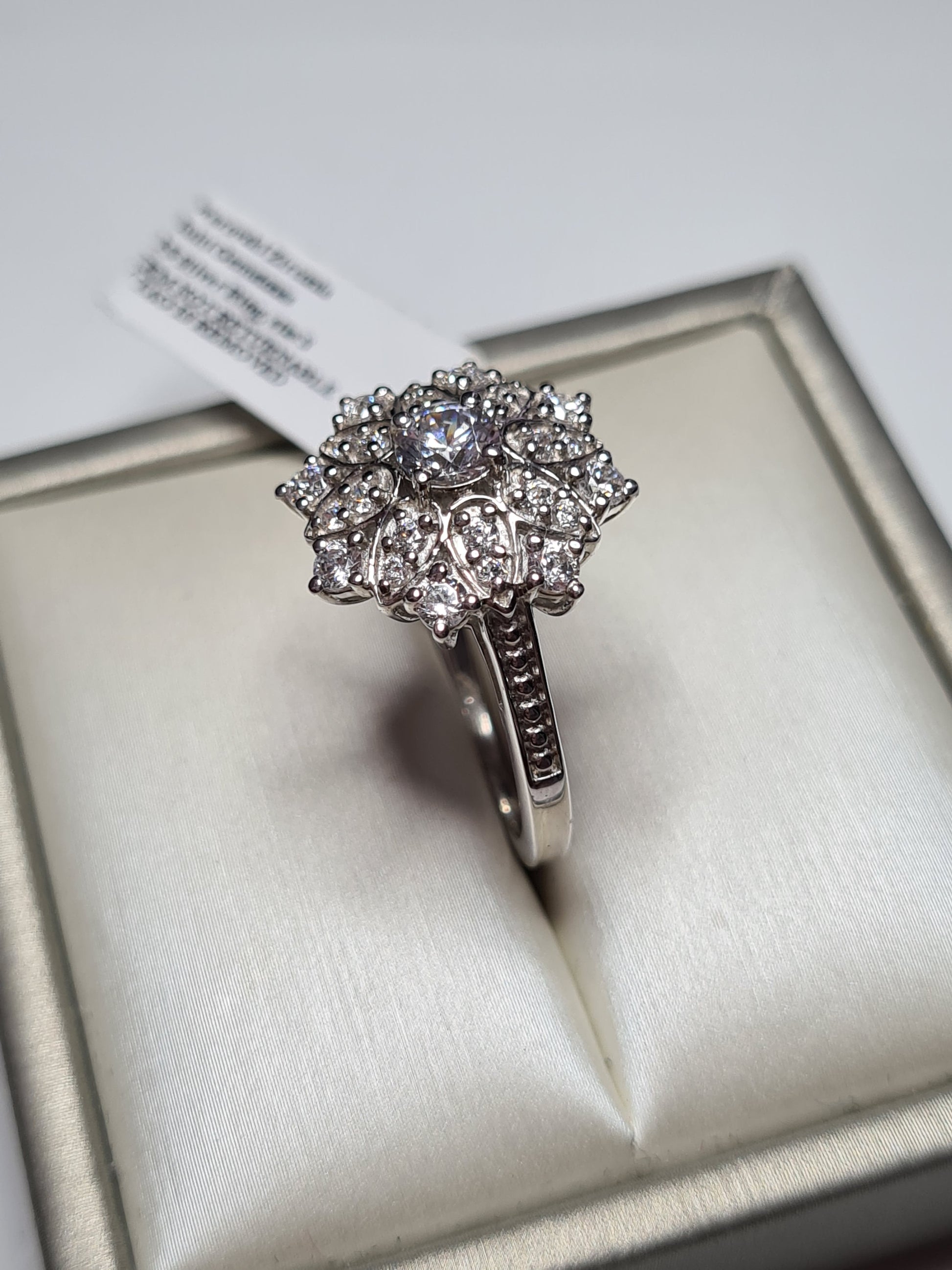 Swarovski Zirconia Cocktail Flower Ring Sterling Silver SIZE S