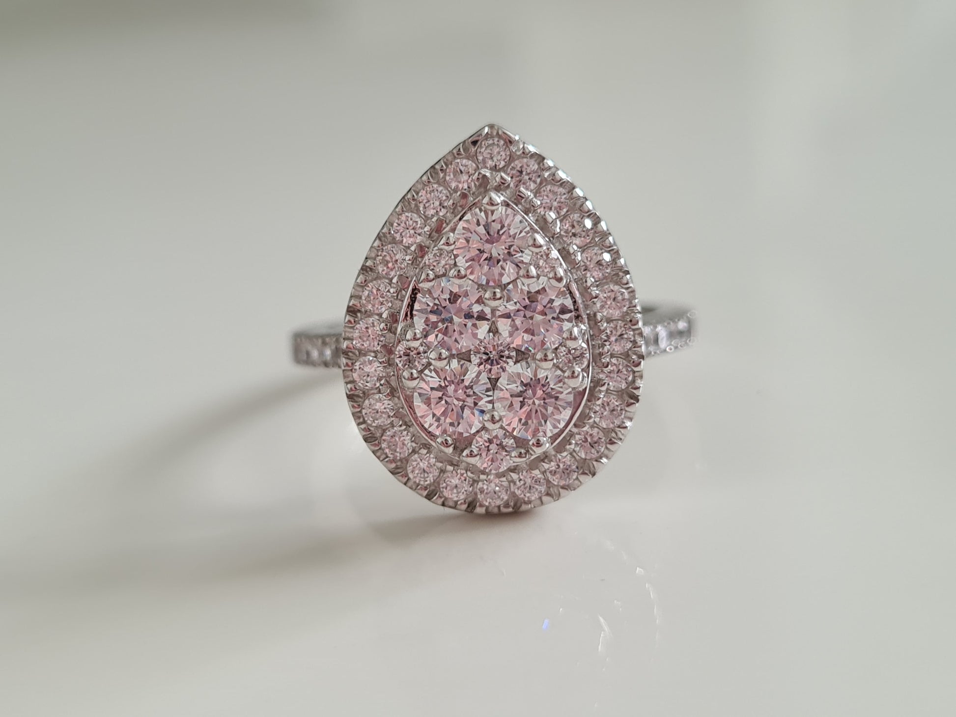 Introducing our Swarovski Zirconia Pear Cluster Cocktail Ring—an embodiment of glamour and sophistication in solid 925 sterling silver. This captivating ring, with the flexibility of resizing by 3 sizes up or down through your local jewellers, boasts a total weight of 2.58 Ct.
