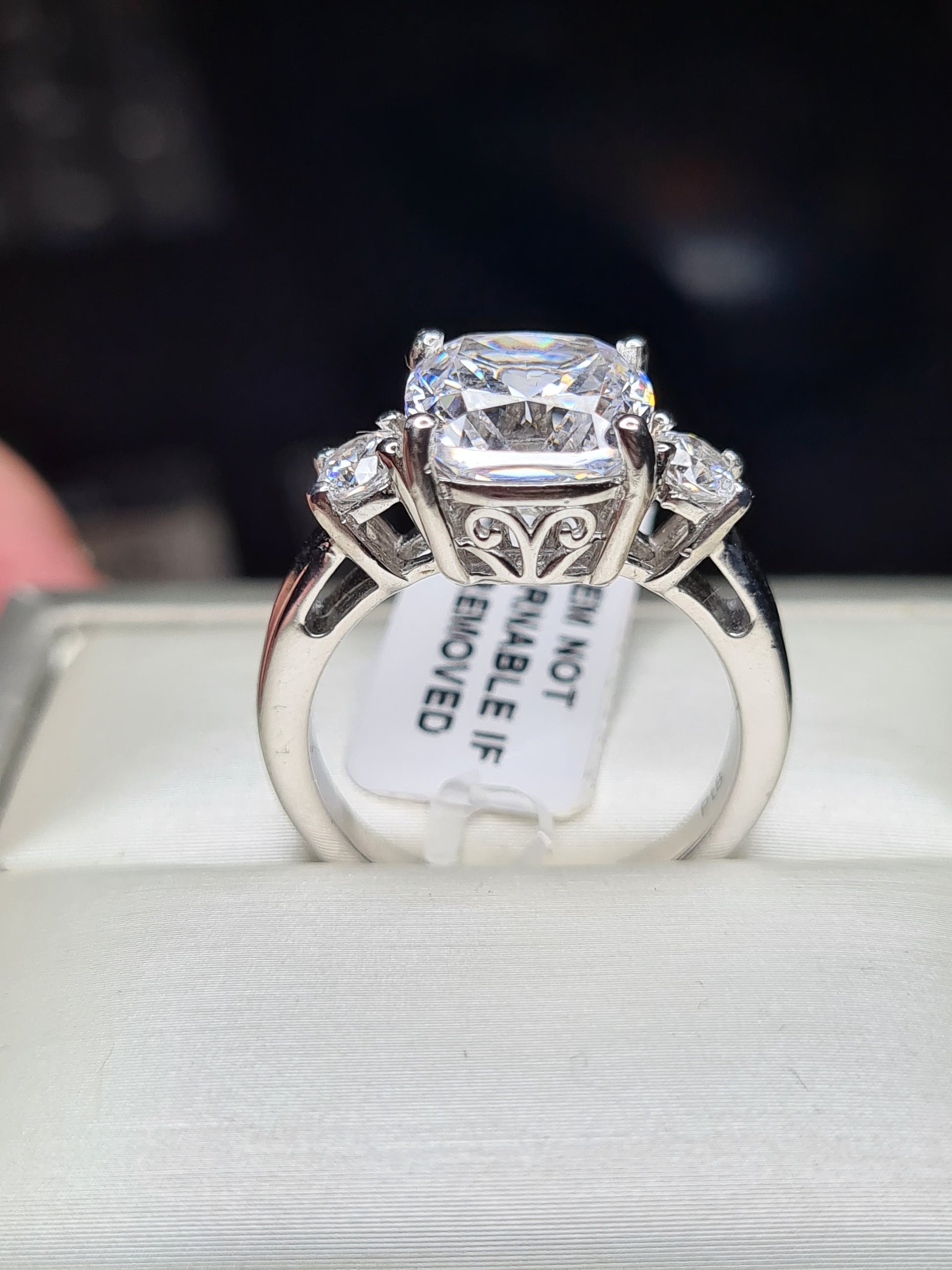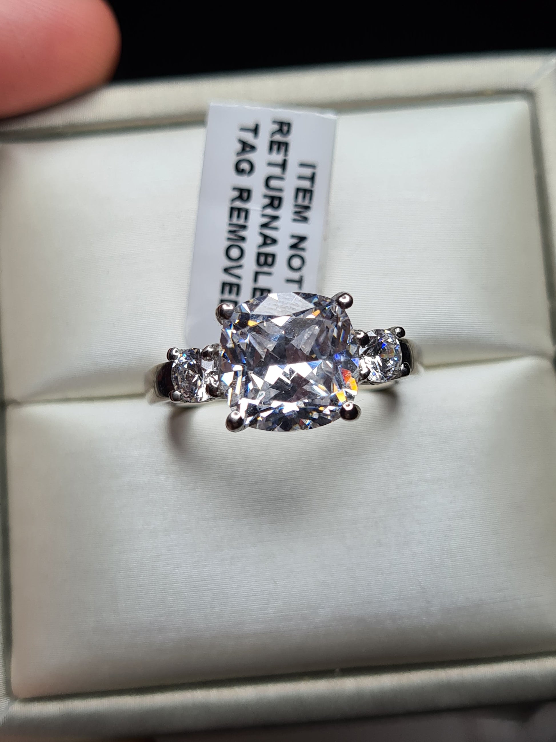 Swarovski Zirconia Cushion Cut Trilogy Ring 925 Sterling Silver SIZE Q