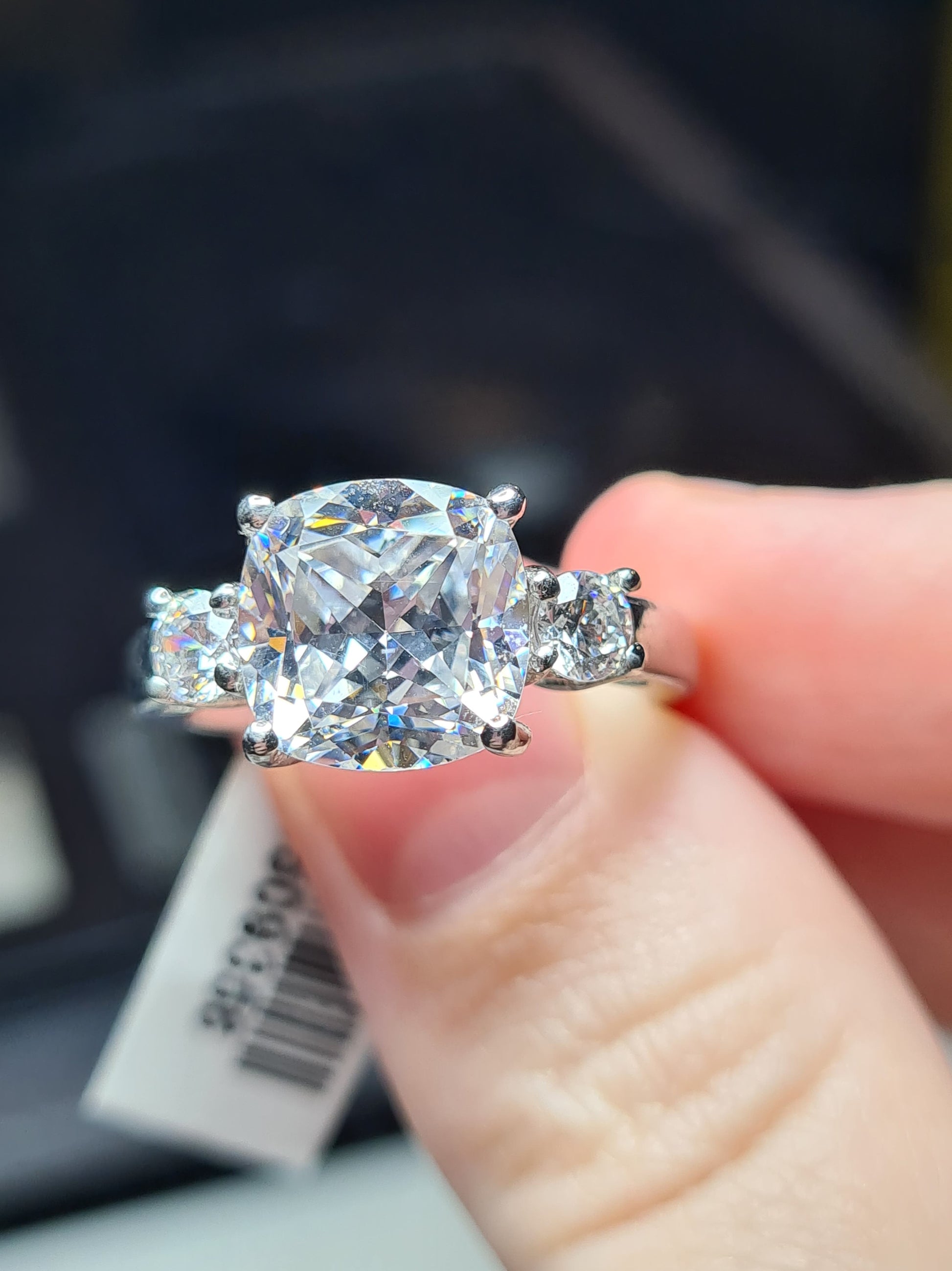 Immerse yourself in the radiant allure of our Swarovski Zirconia Cushion Cut Trilogy Ring—a timeless masterpiece that seamlessly blends daily wear with the glamour of special occasions.