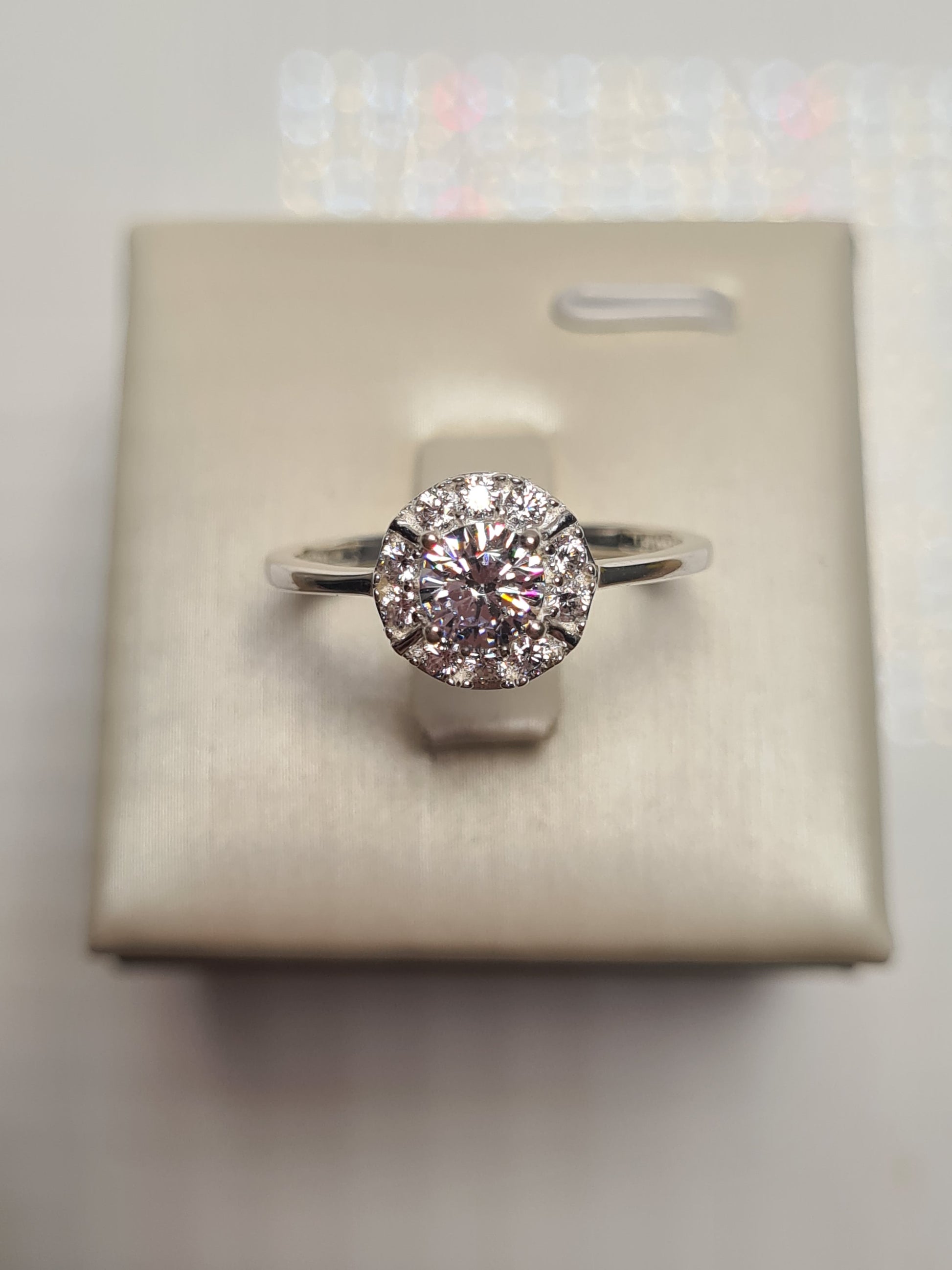 Exquisite Halo Design: An exquisite halo design graces this ring, meticulously carved to perfection. The arrangement of round faceted cut Swarovski Zirconia stones, with smaller ones delicately surrounding the larger center stone, creates a radiant ensemble that dazzles with every movement.