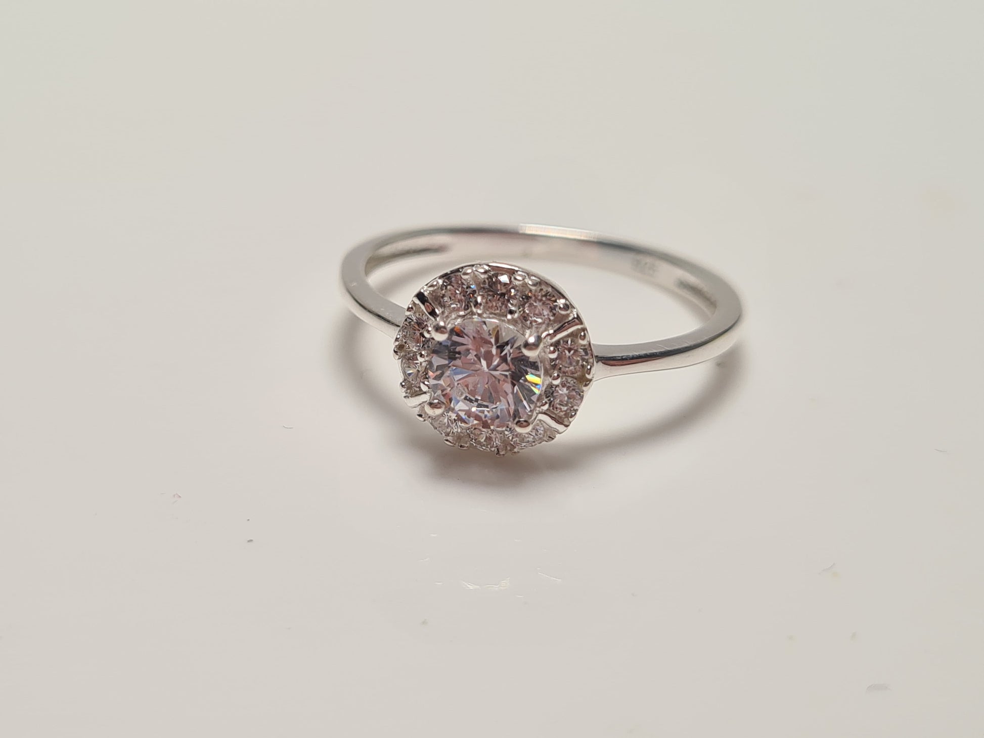 Swarovski Zirconia Halo Ring Sterling Silver SIZES Q , T