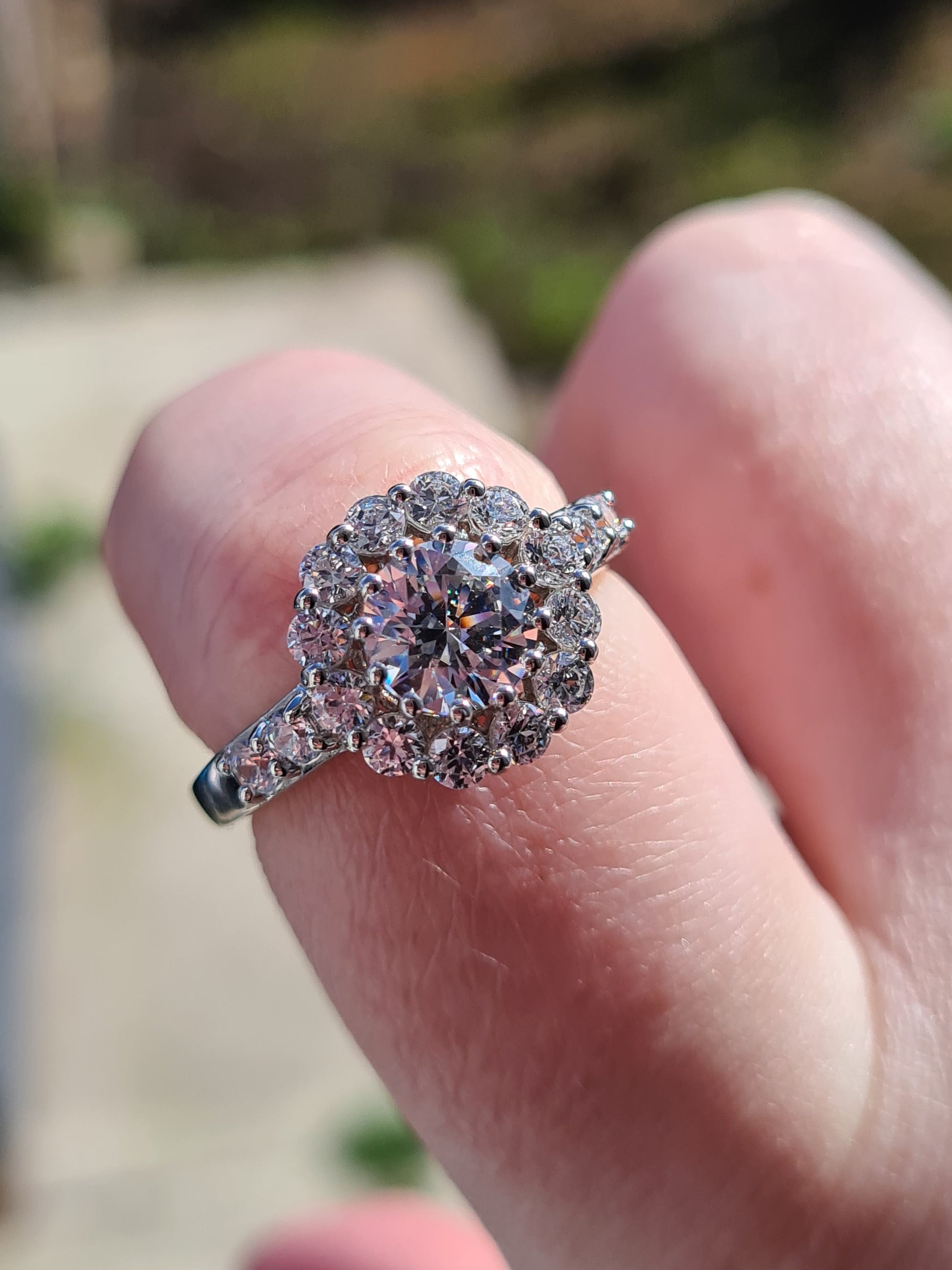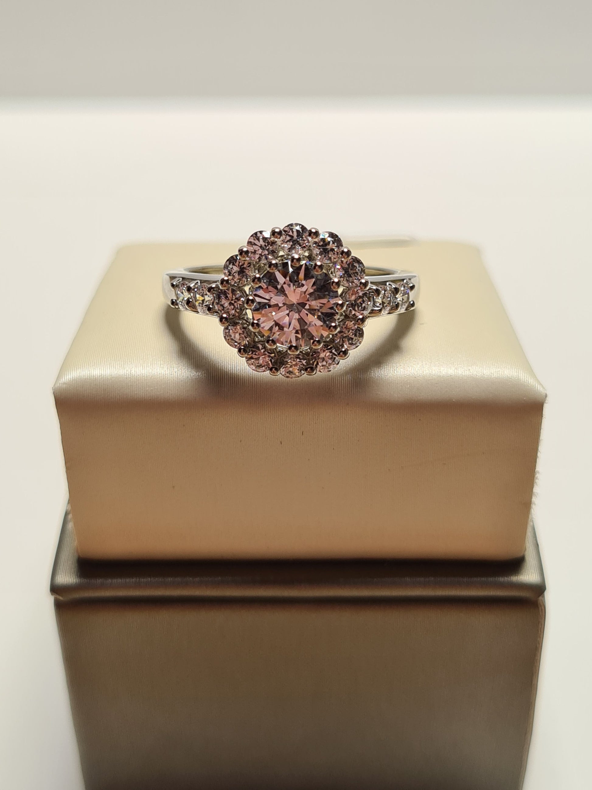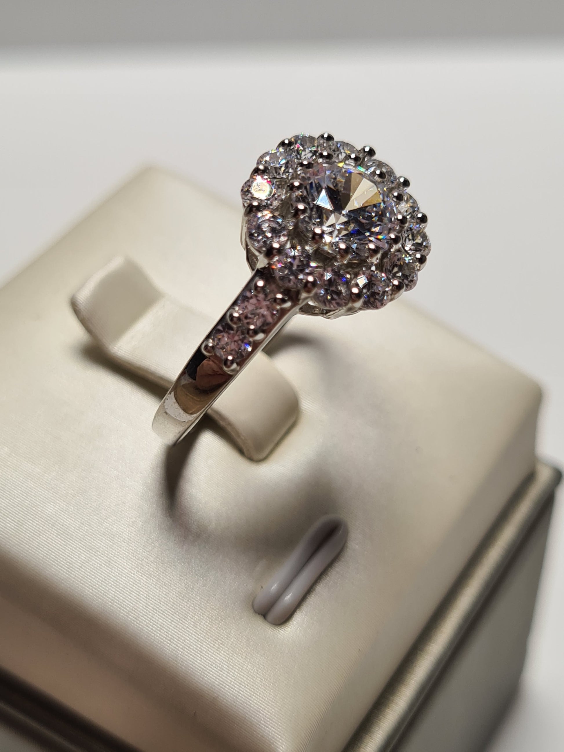 Swarovski Zirconia Large Halo Ring Sterling Silver SIZES L , R