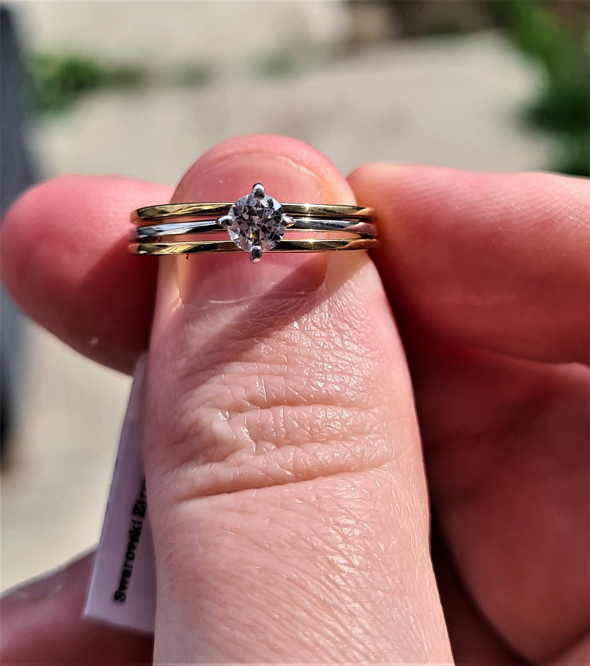 - Design: Solitaire (Central Ring), Stackable (Middle Ring is Detachable)