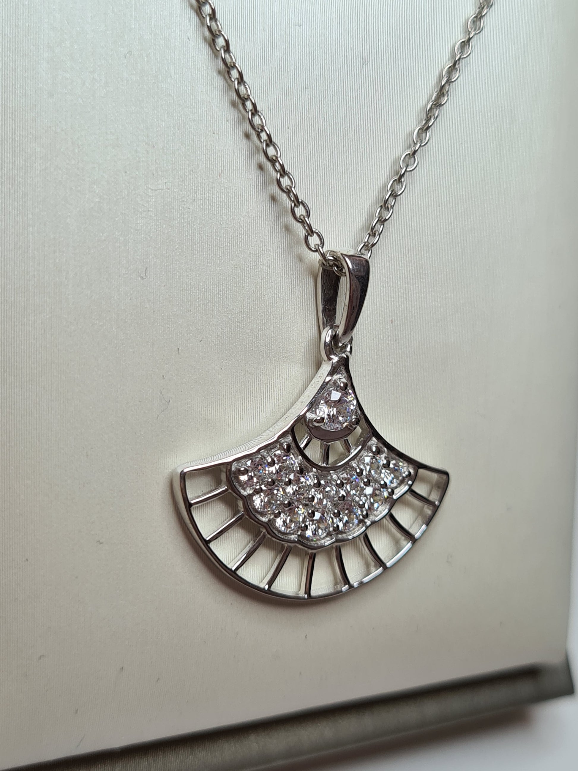 Embrace the versatility of this necklace, seamlessly pairing with your everyday style. The careful arrangement of Swarovski Zirconia forms a unique hand fan style, creating a captivating visual appeal. As a collector's item, this necklace holds an exclusive charm, as Swarovski ceased selling their crystals to third-party jewelers since 2021, making it a unique and irreplaceable piece.