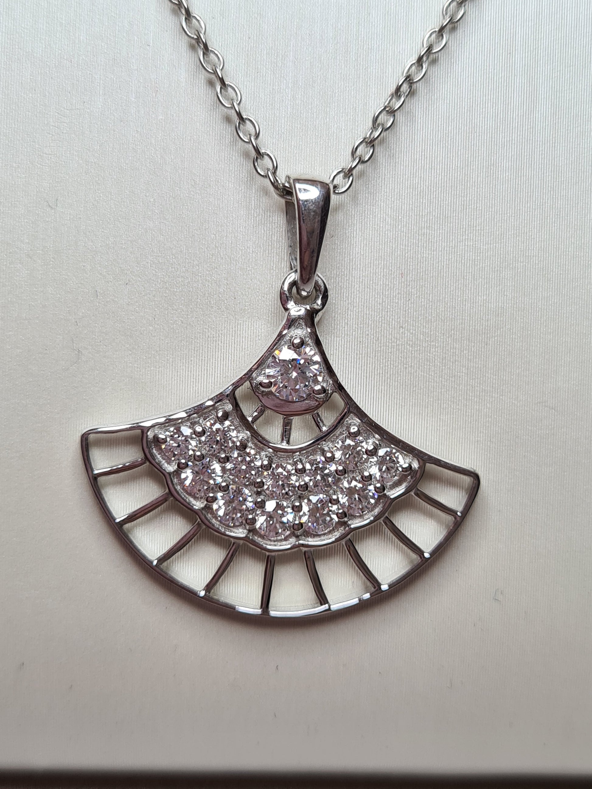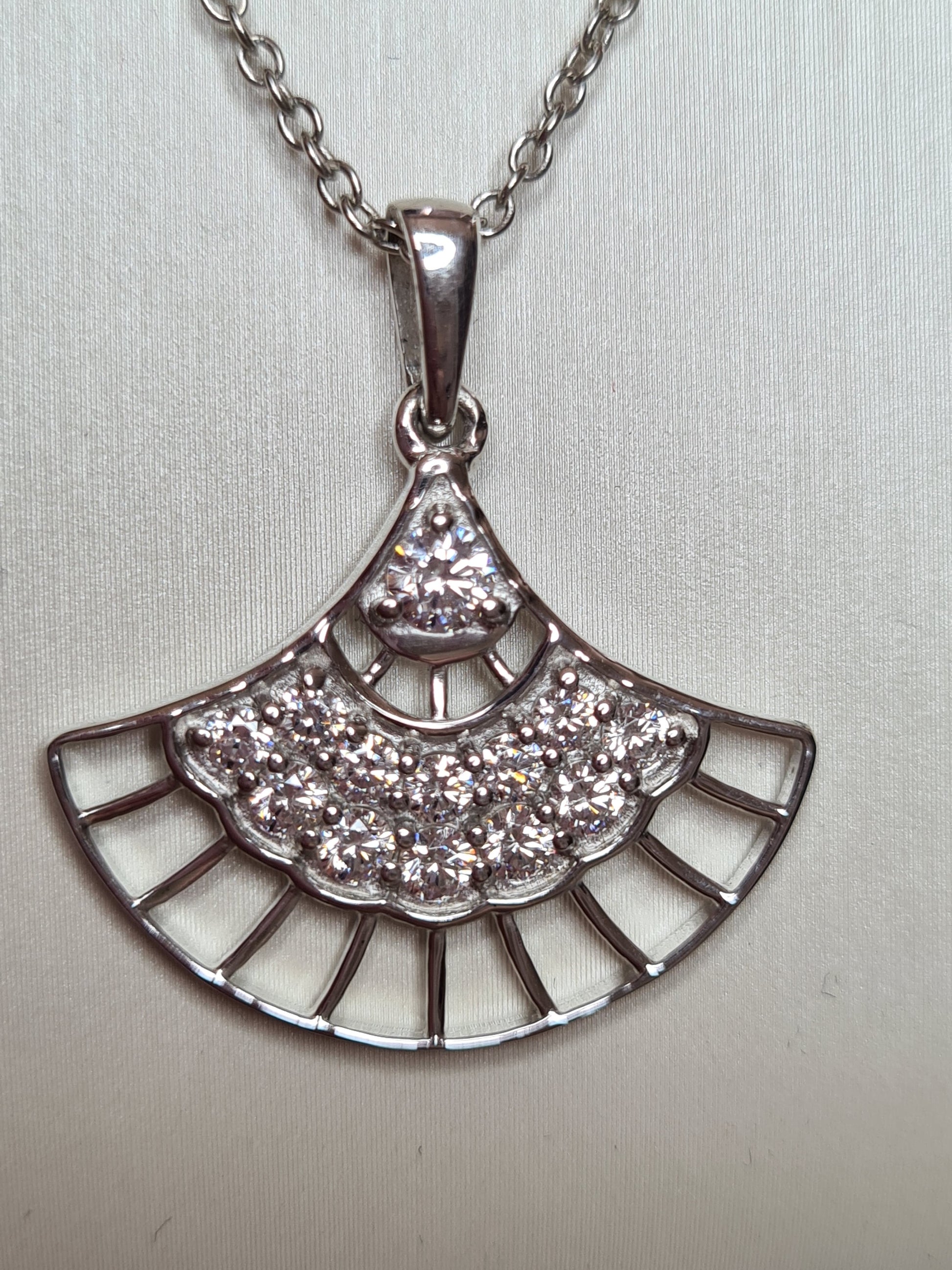 Adorn yourself with the exquisite elegance of our Swarovski Zirconia Unique Hand Fan Style Necklace, meticulously set in 925 Sterling Silver. Crafted with precision and hallmarked 925 for authenticity, this necklace is a testament to both artistry and enduring quality.