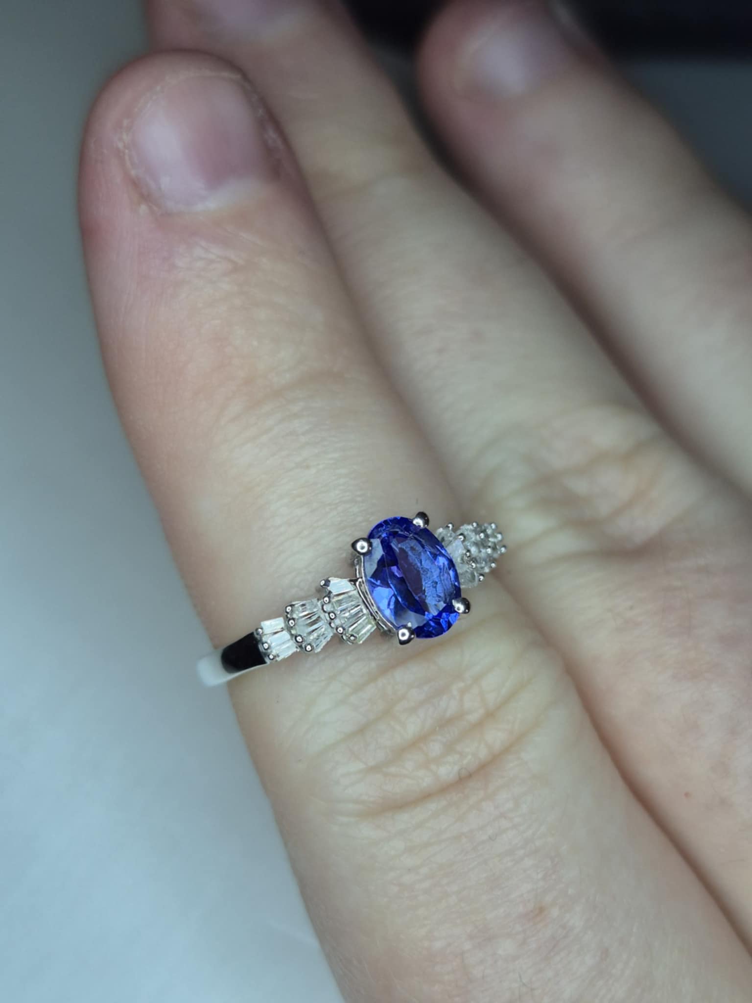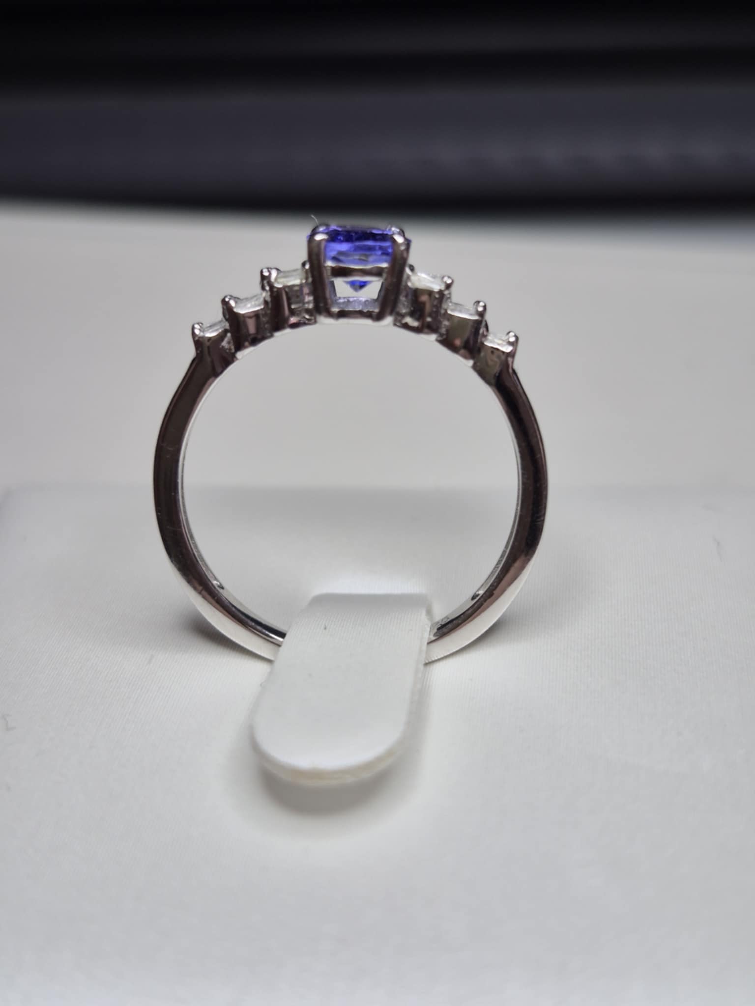 Tanzanite & White Diamond Ballerina Ring Rhodium Overlay 925 Sterling Silver SIZE M
