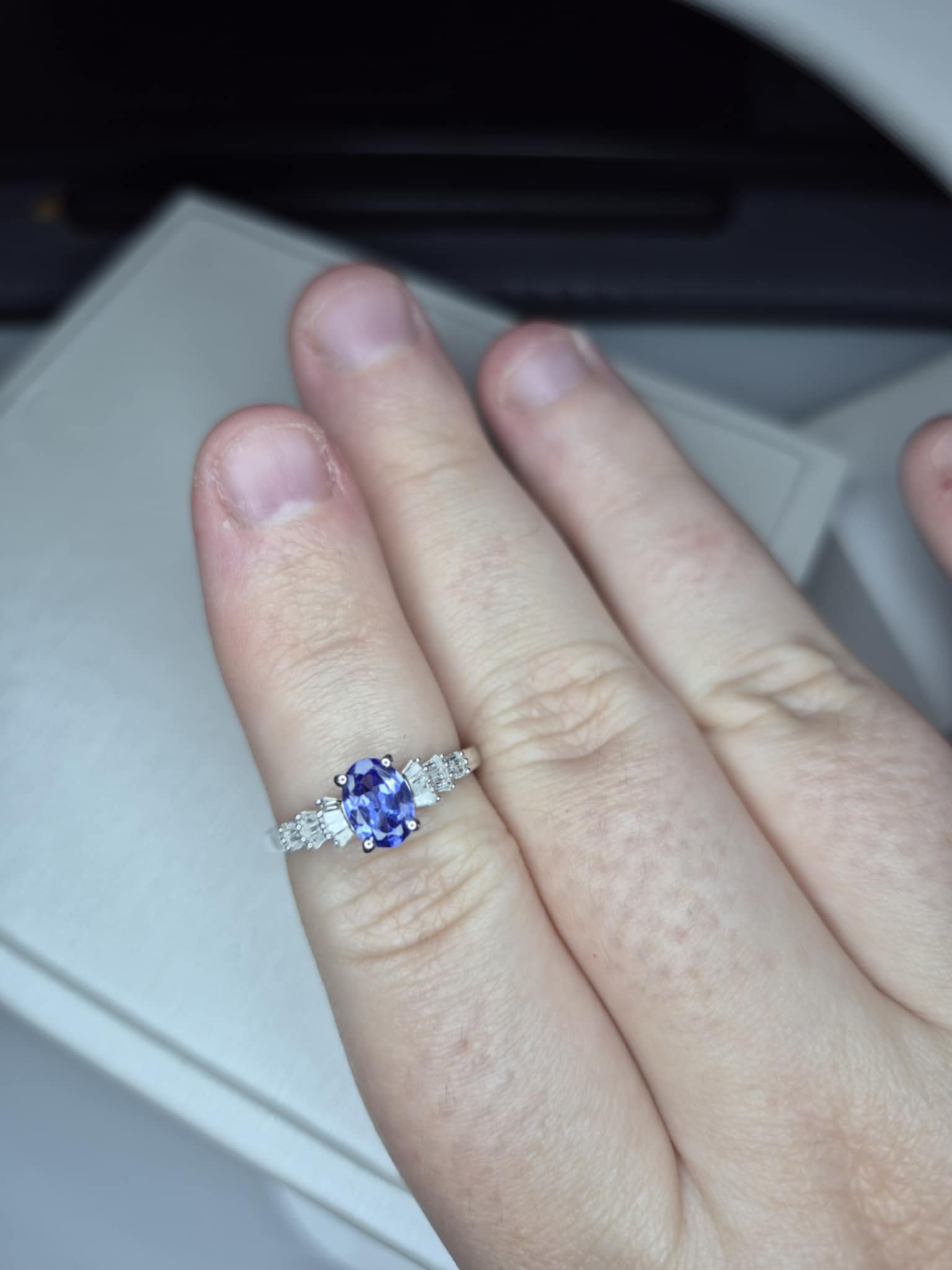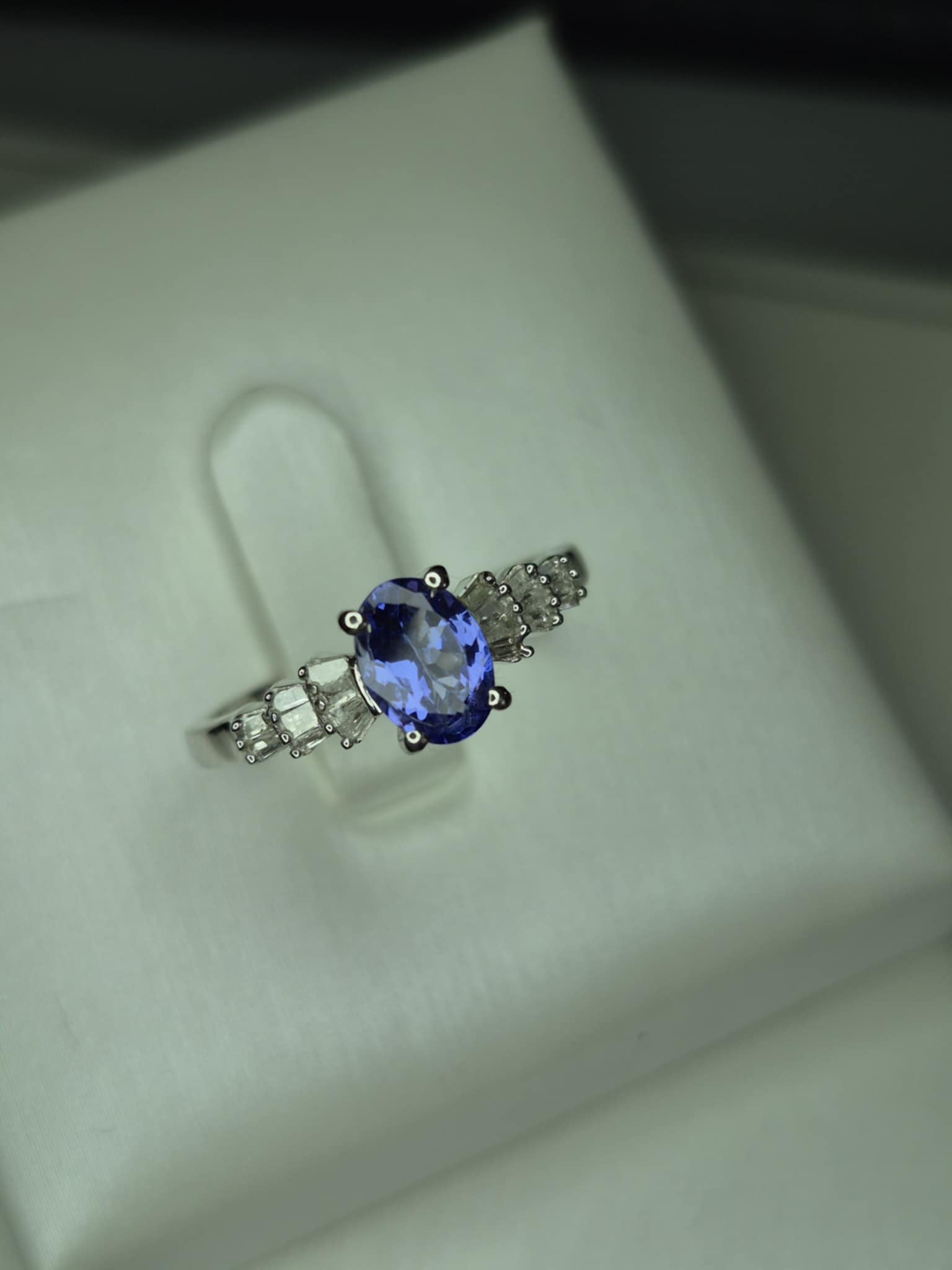 Features Genuine natural white diamonds with a beautiful natural solitaire tanzanite gemstone