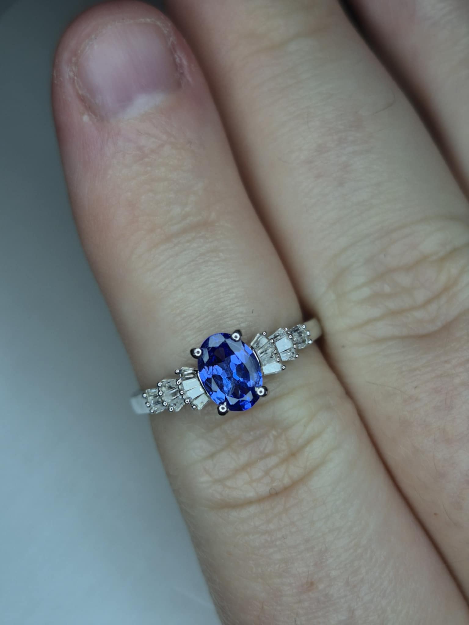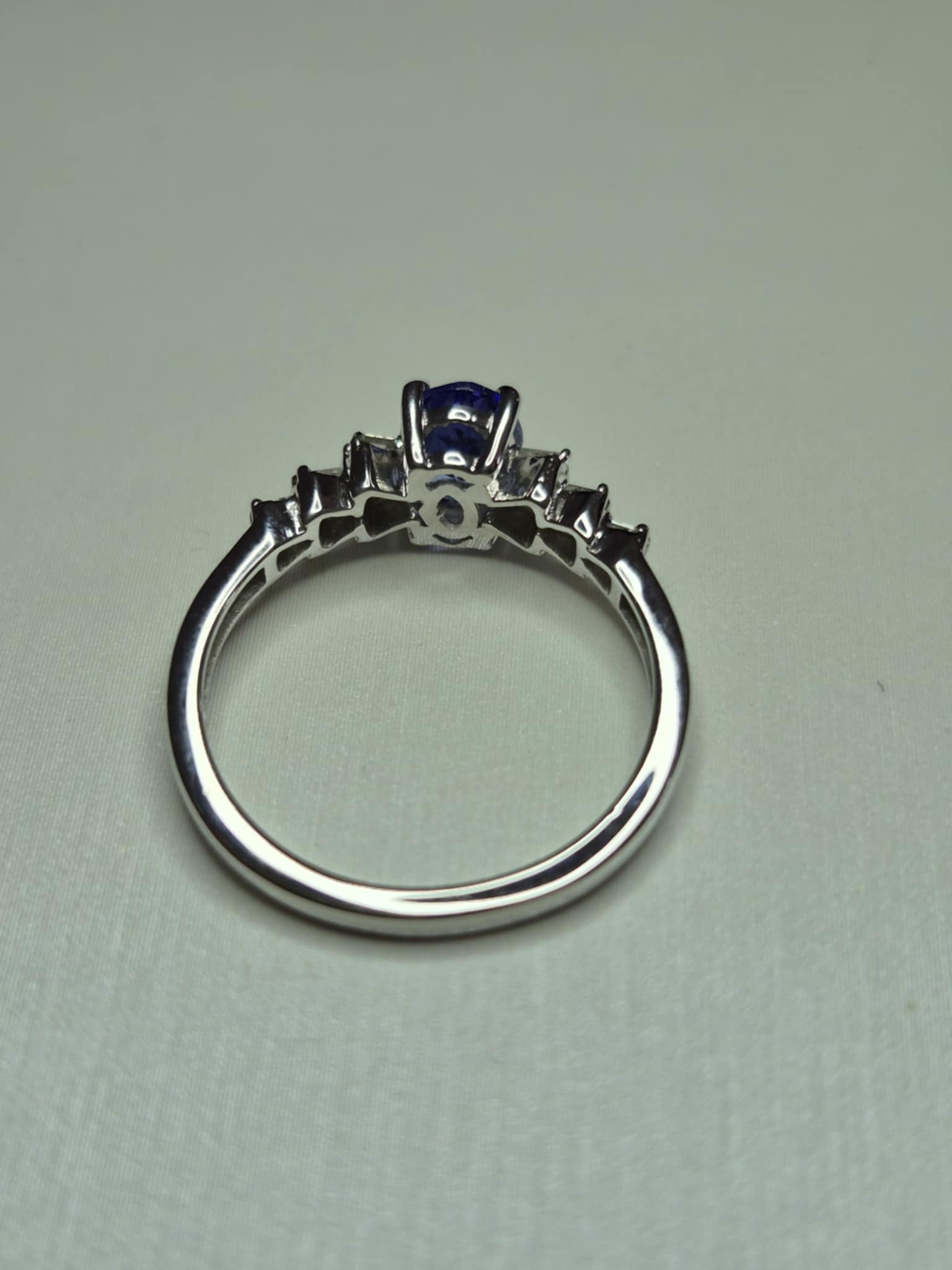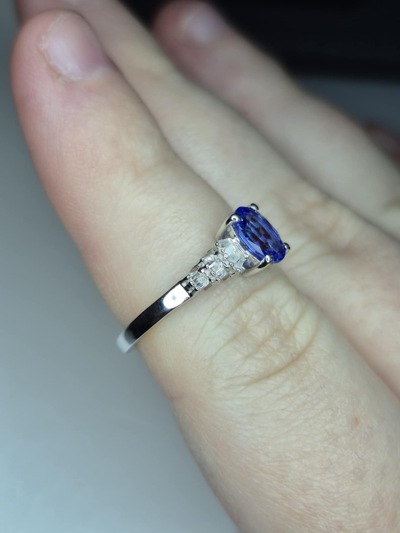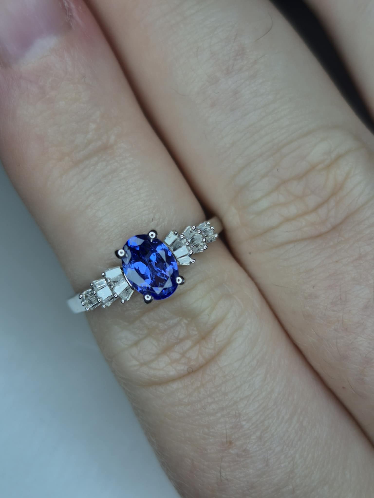 Tanzanite & White Diamond Ballerina Ring Rhodium Overlay 925 Sterling Silver