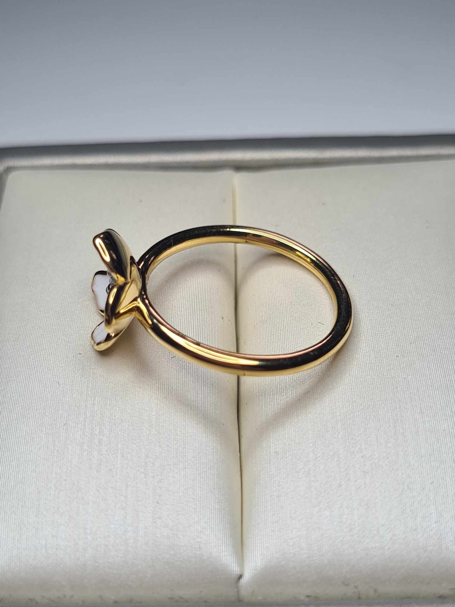 White Diamond Flower Ring 925 Sterling Silver With Gold Overlay SIZE K
