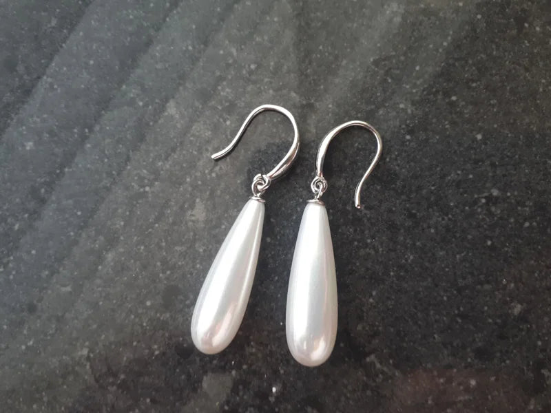 Step into a world of refined elegance with our White Shell Pearl Drop Hook Earrings in genuine 925 sterling silver.